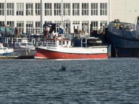 The Old Harbour in Reykjavík can be the centre of exciting happenings and events, with café’s, restaurants, galleries and bars all around us. This was surely interesting to a friendly humpback whale that was spotted within the harbour walls of Reykjavík this spring! It didn’t seem to be hurt or in distress, just feeding among the marooned boats and ships until it had enough and ventured out of the harbour again. This is not the first whale we encounter within the harbour walls and perhaps, not the last one either, but a surprise nonetheless and an interesting sight for both locals and travellers.