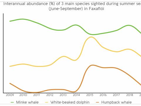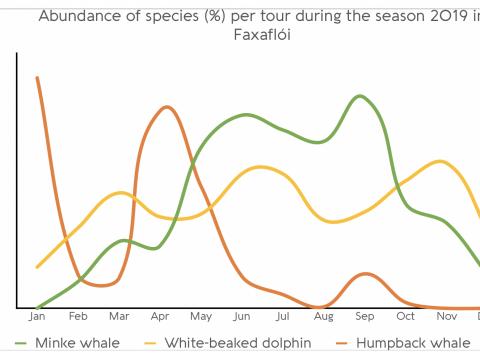 The likelihood to see one or another species relies on an intricate web of several factors; the same way that food availability, weather conditions, oceanic currents or the north Atlantic oscillation influence the presence/absence of cetaceans in Faxaflói, their ecology, behaviour, seasonal movements and/or migrations contribute to increase/reduce the chances we have to see them at a specific time of the year..