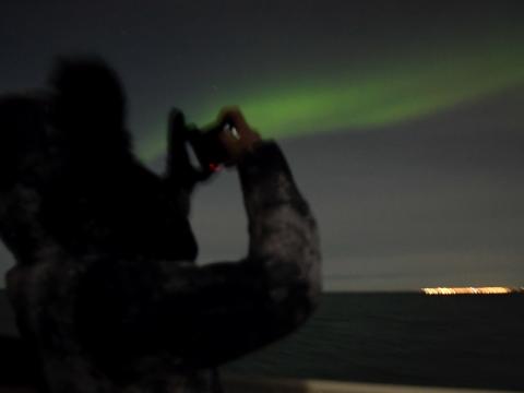 Report from Eldey: It was a cloudy night as we sailed out with a crispy cold wind blowing. The forecast for tonight was very good in terms of northern lights activity and the clouds cleared up eventually, making it suitable condi