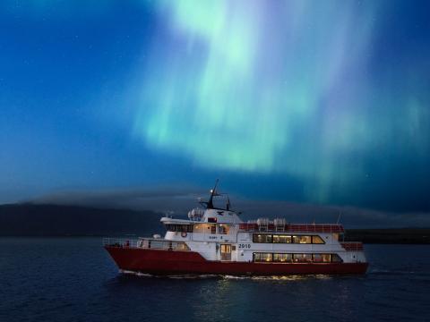 Report from Eldey: Incredible northern lights tonight! Cold air, fairly clear skies and a lot of stars shining above us as we sailed out to Faxafloi bay. There were a few clouds but luckily very cle