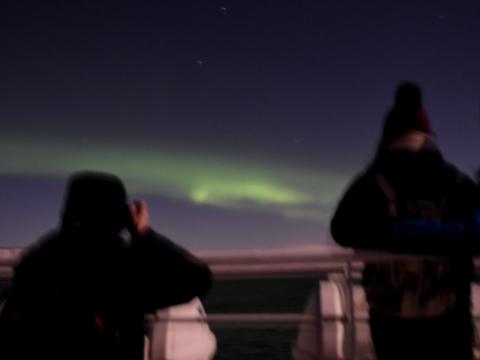 Report from Eldey: The weather conditions were perfect tonight for some northern light hunting! The skies were clear and, seas were calm and the full moon was on just to entice our