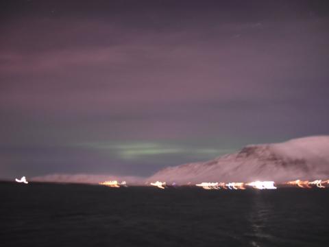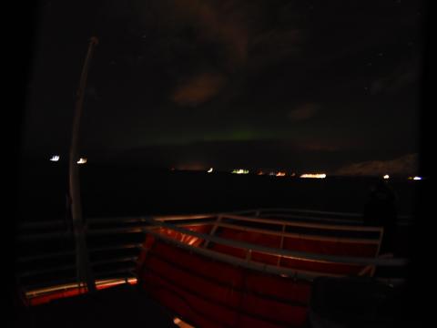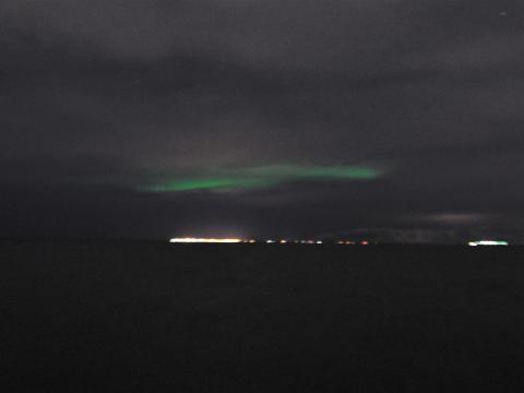 Report from Eldey: What a night - northern lights on demand! It was a slightly cloudy night as we sailed out from the Old Harbour. We could see stars peeking through, even Jupiter and some shooting stars up in t