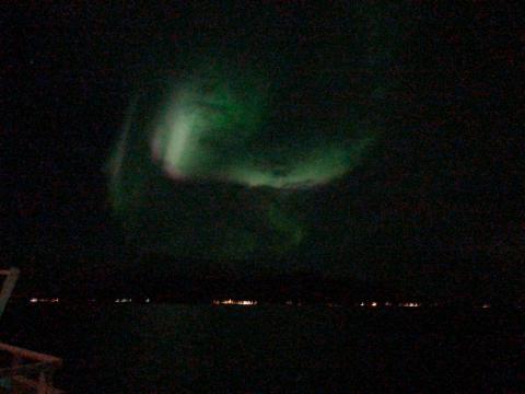 Report from Eldey: The sailing was smooth and the city was lit up beautifully. Its always nice to see the city at night from the ocean. Unfortunatly, the chances of seeing the northern lights were low due to the cloud cover but our mo