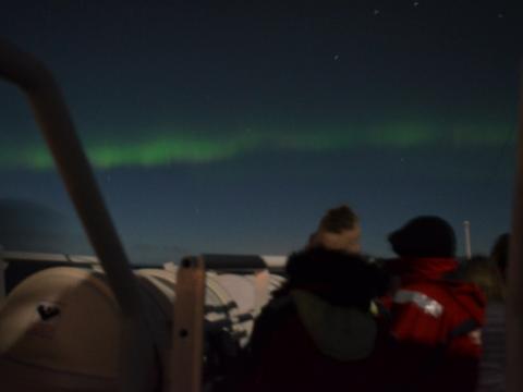 Report from Eldey: Northern lights are always a wonder to admire and a very unpredictable phenomena. We sailed with our batteries fully charged and ready to face cold temperatures (thermometer sho