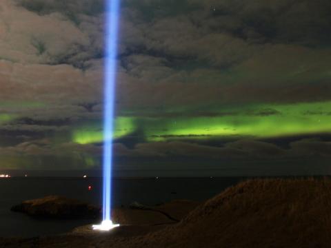 Report from Eldey: We had a great sailing experience tonight exploring the skies in Faxafloi. The imagine peace tower was on so we could see it almost like a bat-signal. Unfortunately, we couldn´t find any northern lights so we offered our passe