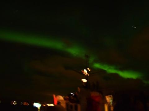Report from Elding: This tour started up with the highlight of the evening. Dancing northern lights across the horizon of Reykjavík. How lucky to have been on a boat to be able to see them as most likely they were hardly visible from the city itself. The ligh