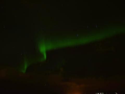 Report from Eldey: The sea had been nice and flat all day and continued to be that way tonight. We only had a little bit of long swell and a few clouds spread across the sky. It took a little while for the northern lights to get started but around 23 o'c