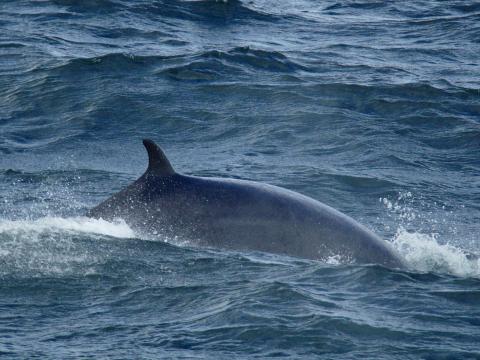 Report from Eldey: Super calm seas and no wind this morning made for a great backdrop for this tour. After sailing out for about 45 minutes, we saw the first fins coming up in the distance. They belonged to minke whales.