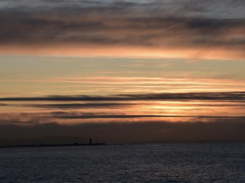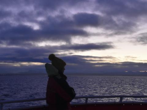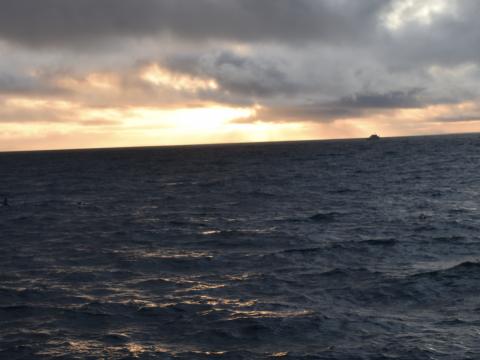 Report from Eldey: A beautiful winter's day to be sailing in Faxafloi! It was a crispy cold day with wind and swell but clear skies with an amazing sunset. We provided everyone warm overalls to enjoy sailing
