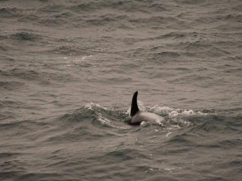 Report from Eldey: With a bit less rain, we sailed out again this afternoon to search for whales and dolphins here in Faxabay. The waves were still relentless but for many of us fun and part of the adventure at sea. We had to s