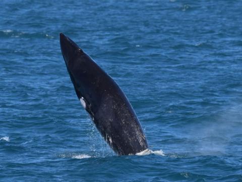 Report from Elding: It was bumpy on the way out, we sailed into the wind so the swells splashed over the boat making it challenging to move around the boat. We had sailed for only 30 minutes when we spotted our first minke whale. At first