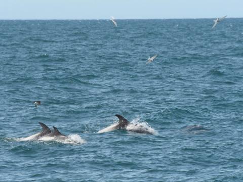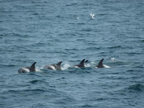 Report from Elding: It was still windy but we managed to maneuver the boat smoothly through the rough seas. Soon after reaching the areas where the dolphins were spotted on the previous tour, we found a large flock of northern ga