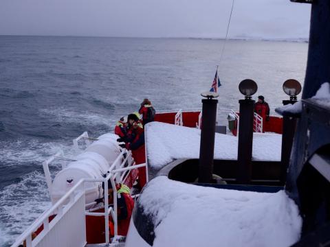 Report from Eldey: The snow fall fell on an off throughout the day but when it fell, it fell alot hindering our visibility. It only lasted a short while however and once we were out into the bay the snow stopped falling and the heavens opened to a colourfu