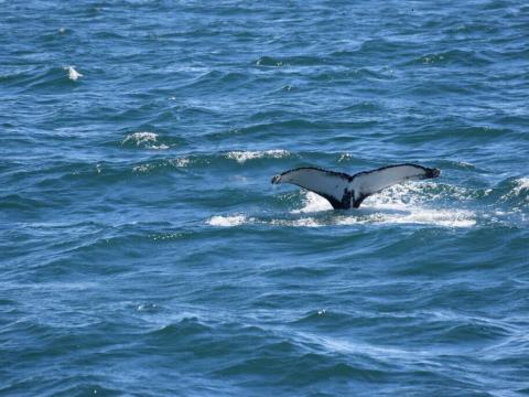 Report from Elding: Conditions sailing out were really good. We had some sun and the swell was really low. While we were sailing out, we got the information from Whale Safari, that one of their RIBs found two humpback whales