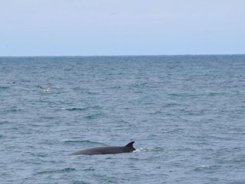 Report from Hafsulan: It was a nice evening the sun was even a bit out and as we left the harbour we saw a nice rainbow. It took us a bit of time before spotting our first cetaceans. We got to see a minke whale, but he was a bit elusive an