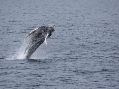 Report from Eldey: The sky was overcast and the winds picking up slightly when we started, but still once far out on the bay the water surface was very smooth. With such conditions, we were able to spot the blow of whales from more than 2 kilometres away.