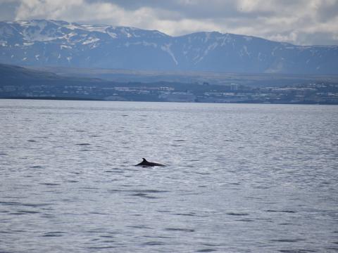 Report from Eldey: The fog had really cleared up by this evening, meaning that we had a great view of Mount Esja as we left the harbour. Just past the lighthouse we saw our first pod of 5 white-beaked dolphins. They didn't seem too ke