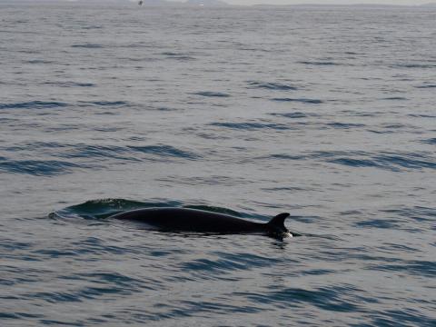 Report from Elding: The sun had disappeared behind a thick cloud converge again and the wind direction changed, now it was blowing from the south and sea conditions fairly good. On our way out we spotted two pods of harbor porpoises, maybe 7