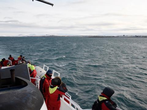 We are sailing out from the Old Harbour in Reykjavik today. According to the forecast the wind will be blowing from the east, so there might be some movement on the boat. If you are sensitive to motion sickness we do offer preventative tablets in th