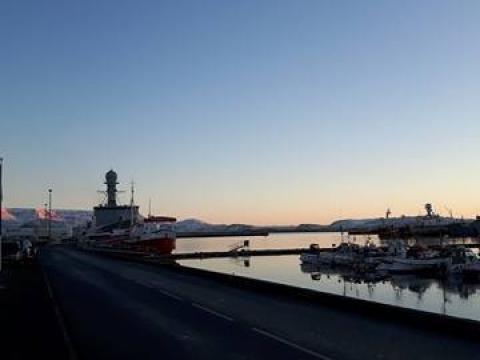 We are sailing from the Old Harbour in Reykjavik on this cold but beautiful day. There is little to no wind but there could be movement on the Faxabay