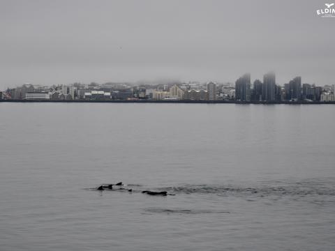 A pod of about 40 long-finned PILOT WHALES were spotted close to Reykjavík today! They are not very common in this area as they tend to stay further offshore and in deeper waters, but we have seen them in the bay on a few occasions throughout the years.