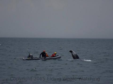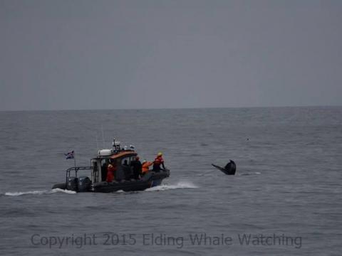 Experts from America and the UK took time out of their own lives and careers to come and untangle a humpback whale that has been seen from our whale watching boats since the 31st July. This whale was in a bad shape, especially around the tail and we were very concerned by it. We tried our own mission about a week ago but without the proper knowledge onsite, our efforts were unsuccessful. This time we had the expertise we needed and after 2 days or 19 hours later our mission was a success. Members of IFAW US and British Marine Mammal Entanglement team (http://www.bdmlr.org.uk) came together to help untangle this poor animal and provide much needed advice for future entanglements. The whale was first attached with buoys to slow the animal down, exhaust it, so they could get close then with the right tools and timing they could cut the micro-filament gillnet that was caught in the mouth and tightly wound around the tail. Bit by bit it came off. Overnight the whale was attached with a satellite transmitter so that we could find it at ease the following day and at 6am this morning we were off for round two finding the whale about 18km from where we left it. It still has a bit of net attached but this will fall of in time. After the net was cut and loose the whale seemed in good spirits and raised it´s tail nice and high showing us that´s it ok. An intense but educational and inspiring experience. Let see if Nettie will be seen in the bay again soon, We will keep you posted
