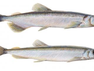 Capelin is a cold water species and the most ecologically important fish in Icelandic waters. It links the food web between zooplankton and larger fish or baleen whales. Comprising 40% of a cods diet, for example. The capelin spawning grounds are in the South and Southwest of Iceland. The larvae then drift to North Iceland towards Greenland.