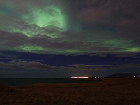 Report from Eldey: The ocean was amazingly smooth and the forecast filled us with optimism for a good light show. After sailing out to a sheltered spot the northern lights began immediately. A green band of aurora, partially hidden by the cloud lit up the show. This aurora grew in size and intensity, flickering shades of pink and purple whilst dancing across the sky. The show lasted for some time enabling everyone on board to snap some photos. The clouds cleared as the tour neared the end with many stars visible in the nights sky.