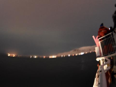 Report from Eldey: It was a bitter cold evening, everyone was trying to keep warm in the warm saloons, complimentary winter overalls and hot drinks that can be purchased at the bar, the northern lights punch (hot chocolate with rum) being the most popular. Hazy, starry skies were beautiful to sail under but  the northern lights 1 hour 30 mins before the northern lights appeared. A faint arch to the north, we started first capturing green hues with our cameras and then they got a little bit brighter. However, this only lasted for a couple of minutes and then faded away. This is completely normal as the northern lights are a result of chemical reactions in the atmosphere and thus constantly changing. We were waiting for them to get brighter again and they did but only for a minute again and still not very bright to the naked eye. We felt like this was not enough and we definitely want to show are passengers more. Therefore we gave everyone a complimetary ticket allowing to come on another northern lights cruise for free within the next two years. Hopefully next time they will get to see aurora borealis in its true potential.