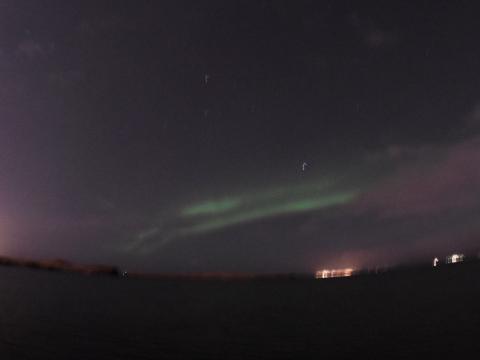 Report from Eldey: Nature keeps surprising us over and over again! It was a windy night with some rainy clouds up in the skies as we sailed out from the Old Harbour. Early on, however, we already started seeing green hues behind the clouds through our cameras, as camera usually captures the lights long before our eyes can. We were waiting for the clouds to break apart, and soon enough they did, revealing more lights in the sky, and this time easily visible to the naked eye. Eventually, we had two beautiful green arches stretching across the sky, even "dancing" a little. But as in Iceland, the weather can change in a heartbeat, we were suddendly sprinkled with some rain brought by new incoming clouds. We were still enjoying the night, warming up thanks to hot chocolates and in no time, the clouds disappeared and the lights were on and visible again! We almost couldn't believe our luck, truly amazing!