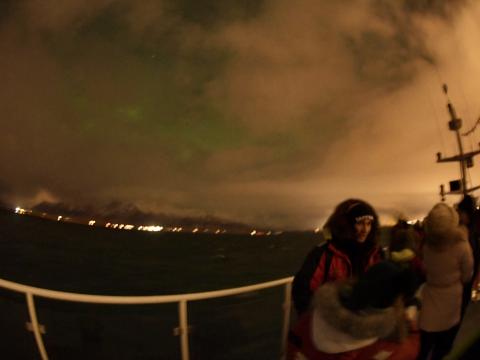 Report from Hafsúlan: WHAT A NIGHT! It´s going to be hard to sleep tonight after the excitment. It´s been difficult the last week with the cloudy skies and low activity to see the northern lights and passengers were a little pessimistic regarding tonight too. Starting on a very cloudy, windy and snowy tour passengers where not sure what they will see. The guide, reassurig them that the forecast was meant to change and just needed some patience. After about 30minutes of cloud we started to see northern lights in tiny gaps. Then suddenly clouds cleared, stars shone and northern lights steaked the skies. WONDERFUL. One of our passengers wanted to propose under the northern lights which added more magic to the evening. Congratulations to Hannah and Cameron. An exciting evening with many smiling faces. Patience and optimism does work sometimes and tonight proved it!