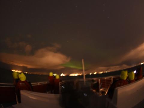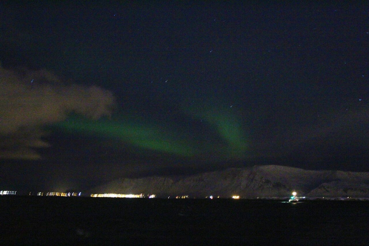 Tour from Eldey & Hafsulan: Finally we could sail for our northern light tour after so many stormy weather that we have suffered during the last weeks. Clear was very clean at the beginning so we could see the start, but as soon as we got closer to one of our main spotting areas, a surprising storm caught us! Snowflakes alternated with hailing, giving us an impression that nature hated us, but we persisted as we knew it was going to be only for a short period bringing us the opportunity to see the northern lights and indeed we did! After a short waiting we started to see a greenish line over the horizon, at the beginning was very shy but at the end we could see a nice performance as it was spliting in two and dancing in the skies. It was a very nice way to be back in the sea enjoying this wonderful phenomena!