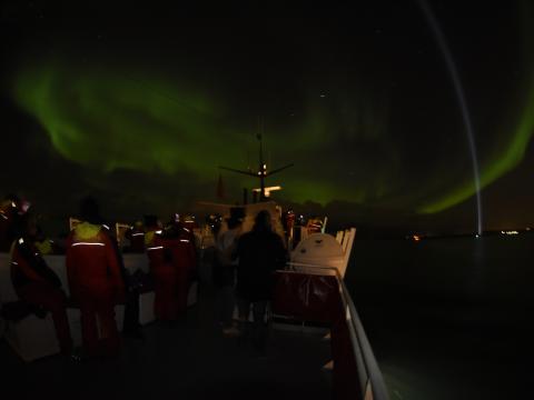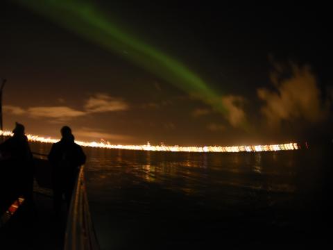 Sightings: Incredible sightings, the northern lights filled the sky, dancing and even showed pinks as it did so. They were seen from the very beginning to the very end but the best view was within the first hour and then they become fainter but still filled the sky. A unique and amazing evening to be on teh northern lights cruise.