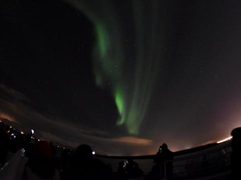 Report from Eldey: An incredible Aurora show tonight! We started the cruise under fairly cloudy skies and a little rain. The sky was clearing up little by little as the tour went on, revealing a star studded sky with the light beam of the Imagine peace tower shooting up to the skies as well. After an hour and a half, there was still no activity, no green hues visible over Mt Esja where the lights usually start. Our passengers were almost giving up hope and going inside to warm up when suddendly out of nowhere a huge arch appeared directly above us!  Eventually we had four bright green arches straight above us dancing and doing different shapes, waves and swirls in the skies. We could not believe our eyes! And the lights stayed on until the very end of the cruise which made the experience everything we could have asked for. Everyone left the boat with the brightest smile on their faces: A perfectly successful Aurora hunt tonight.