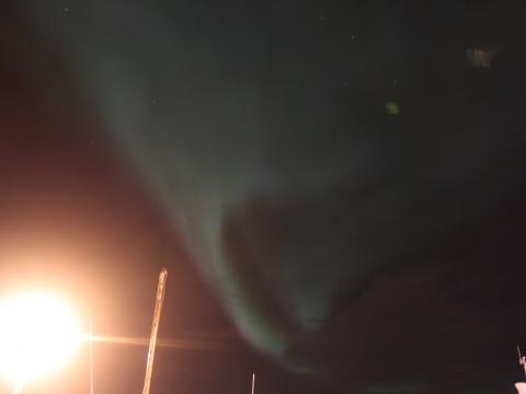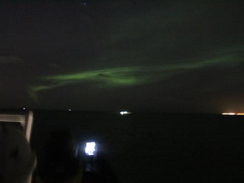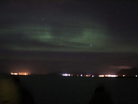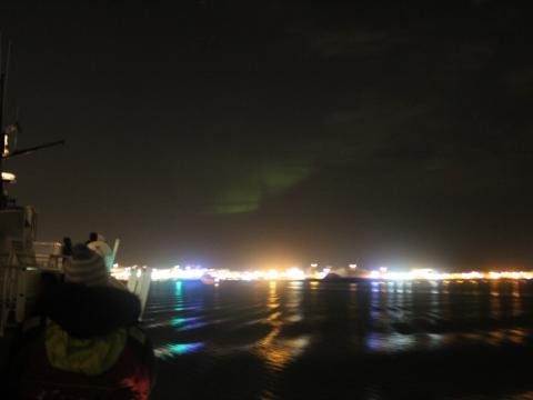 Report from Eldey: With such a great forecast (relatively clear sky + kp5 index), we couldn't wait to get out there this evening ! And the northern lights seemed to be as impatient to show up ! Right after departure, there was an whirling green ribbon behind our boat. Great beginning of the tour, but this first display vanished after few minutes. After that, we had to wait a bit more before getting more action. This waiting time proved to be useful to try different camera parameters and train to capture this phenomenon, though. For a while, there was a thin high layer of clouds, so we could somehow see green colour on the pictures, but no proper northern lights yet. Then, on the right inside of the boat, a bright arch appeared and got brighter. It stayed there for few minutes before undulating, fading away, and coming back again. At some point, the lights became wider, took more space in the sky, and what was a thin ribbon became a veil ! We enjoyed it until it disappeared and then started to head back toward the harbour. But the sky was not done yet with us, and as we crossed the harbour walls we were greeted with more northern lights above the city lights, finishing on an exquisite bonus. After docking, the lights strengthened and lingered for a while above Reykjavik, so hopefully everyone could enjoy the aurora a bit more on their way home !