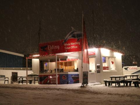 Report from Eldey: The snow covered landscape offered a beautiful backdrop today for our tour. Not much wind and a predicted activity level of 5 made us hopeful to find great northern lights tonight, only the clouds would be able to spoil a nive evening. As it turned out we were pretty lucky with the clouds and the weather. It only snowed at the beginning and the end of the tour, in the middle we saw a lot of stars and even a few shooting stars. Even though the predicted activity level was high, we had to wait for over two hours till we saw the first sign of Northern Lights. They never reached the predicted level, but the green was clearly visible for a little while and many of us were happy to see that after a long wait. Overall a nice evening in the bay with a stunning backdrop and a few northern lights.