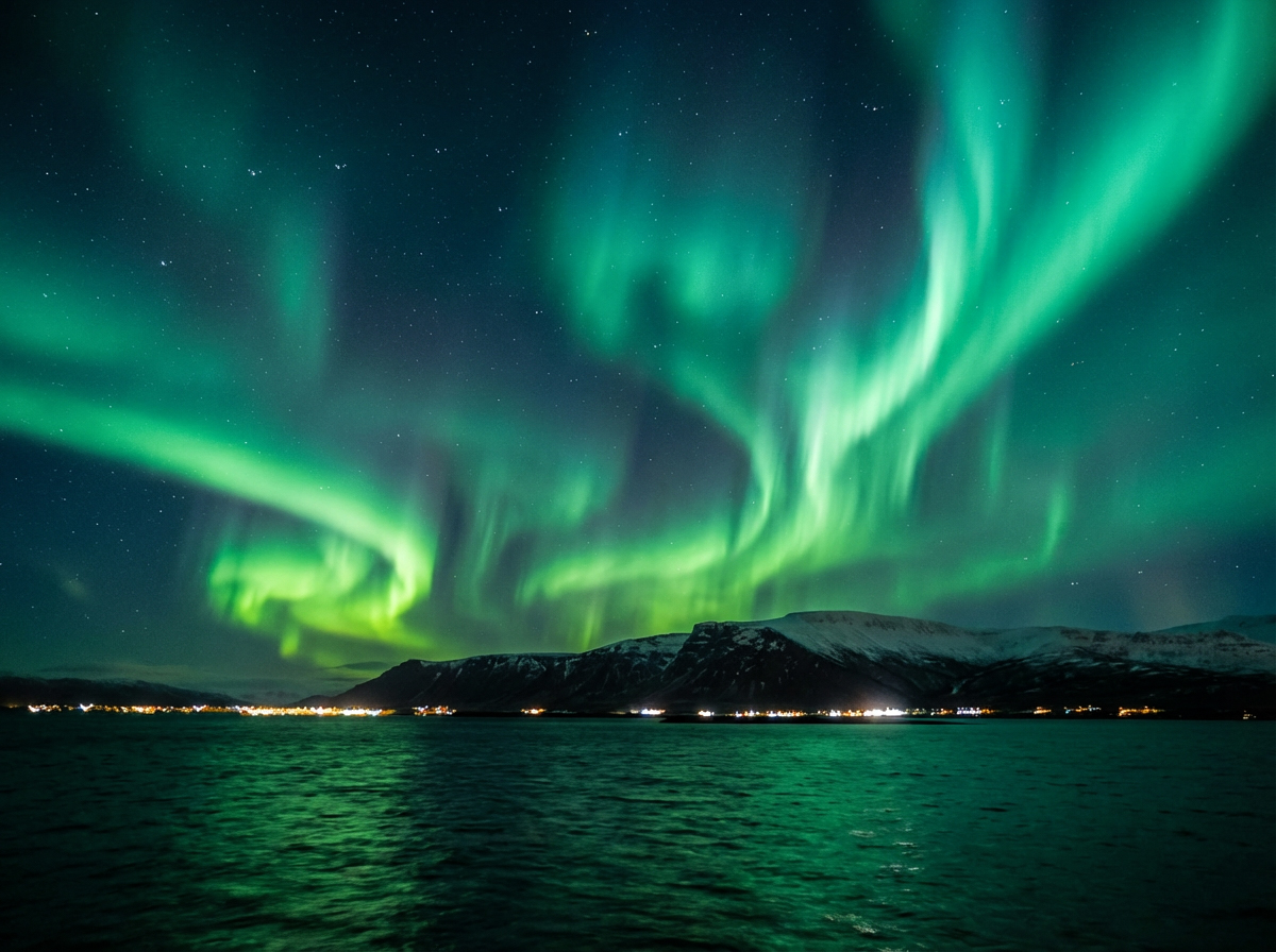 Report from Hafsúlan: Tonight was a night to remember! As soon as we left the harbour we could see the beginnings of a faint green arch of northern lights stretching across the entire sky. As they were still not too visible to the naked eye, we made a brief stop at the Imagine Peace Tower to admire its light before heading away from the city and into darker seas. The skies were perfectly clear tonight which made it easy for us to see lots of stars but also easy to spot the auroras when they started to get brighter... And brighter! The arch turned into two arches that turned into auroras covering the whole sky! We saw green and purple and even red! They were everywhere! Our passengers were even treated to an amazing corona that formed directly above our boat and we could see the northern lights dancing all across the sky. Eventually they fizzled out and became faint streaks in the sky again so we headed back to the harbour after the best northern lights tour of the winter so far!