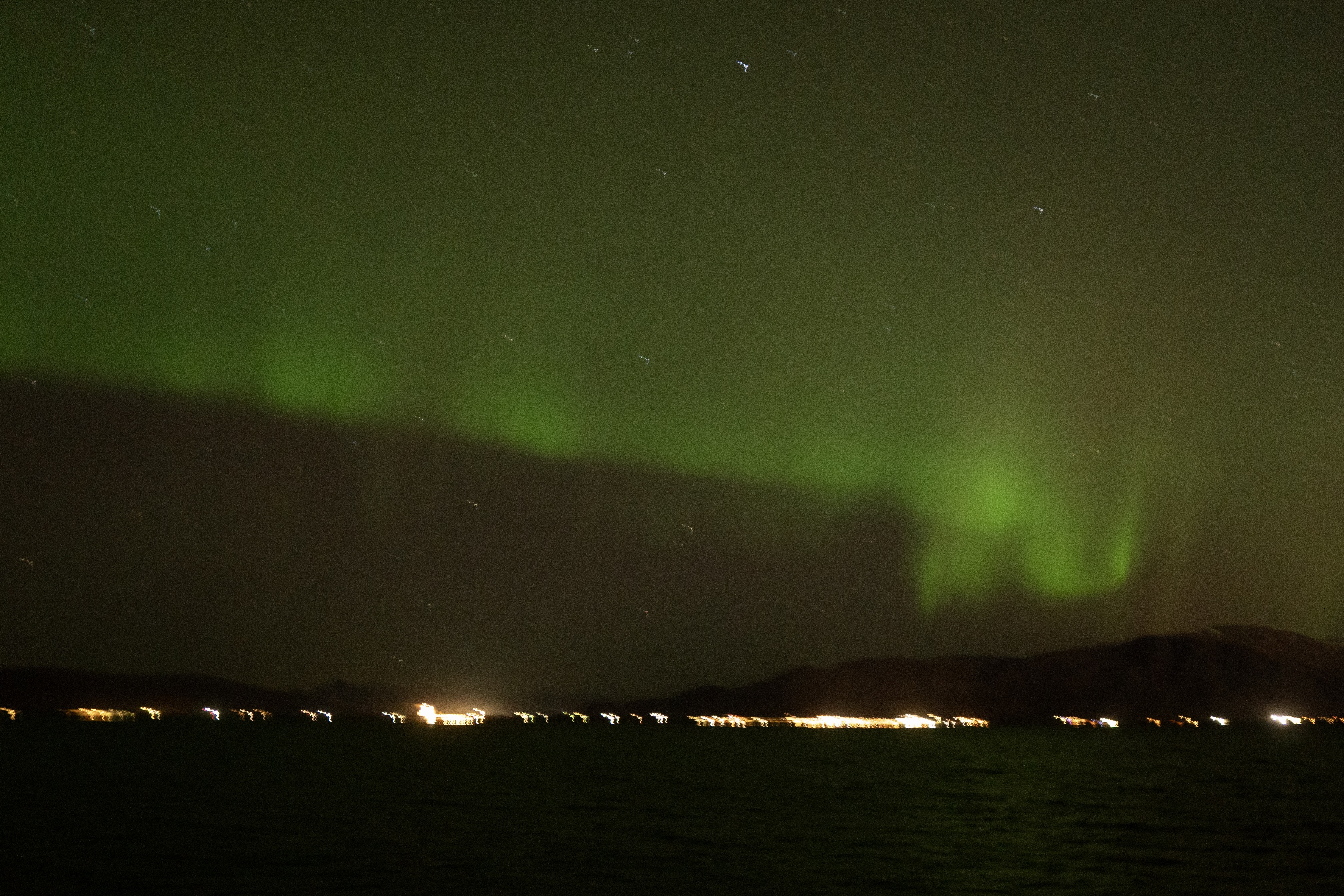 Report from Eldey: The Aurora was visible right from the start on. As we had a clear sky we were able to enjoy the full spectacle in full view as soo as we left the lights of the city and harbor behind us. For the whole tour the lights were out and forming arches and curtains even though the intensity changed throughout the tour. Everyone was happy and took the opportunity for great pictures of this awesome phenomenon of nature.