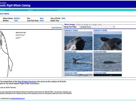 The whale was positively identified by The Anderson Cabot Center for Ocean Life as: "Mogul a 10 year old male born to Slalom in 2008.". According to his sighting history, he seems to have spent most of his life around Georgia, Florida, Cape Cod Bay and the Bay of Fundy before crossing the Atlantic Ocean.