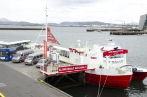 Right in the heart of Reykjavík you find Elding's ticket office well positioned at the charming Old Harbour. It has become one of the city's liveliest quarters with its quirky little shops, galleries, restaurants and a range of marine activities. Our boats are conveniently located just a little further down the road to our ticket office. Boarding is through our stationary boat, Fífill, which also serves as a Visitor Center, Wildlife Exhibition, Café and Souvenir Shop.