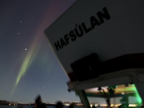 Sail into Faxaflói bay, where Reykjavík's glittering cityscape meets the Northern Lights. A unique winter adventure that sails whenever conditions allow, giving you the best possible chance to enjoy the auroras and city skyline in comfort.
