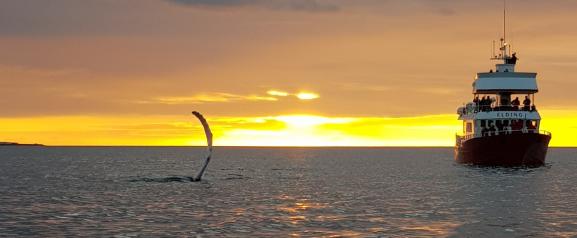 Preview textA truly unique whale watching experience - the mystical midnight sun often casts a beautiful orange and pink glow to the mountains surrounding the bay and together with the wildlife it provides quite a unique perspective.