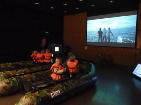 Our tour guides Freydís and Aldís welcomed hundreds of local kids and their parents on board for one of many exciting virtual tours that day. They got the kids inspired to look for signs of whales such as a blow, a splash, a dorsal fin or from the projected videos around the room. It surely didn't take long until there was someone screeching at the front that they'd seen a whale.
