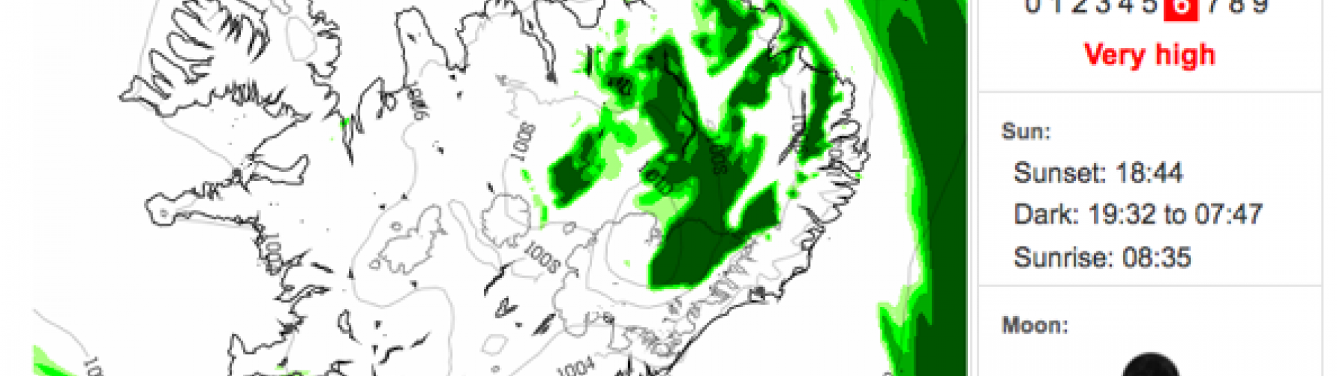 The Aurora forecast for this week, namely the next couple of days, is looking VERY promising. Cloud cover should be next to none and activity on the scale of 6/9. Wind should be fairly calm, sea state good and moonlight a minimum 1% illuminated.