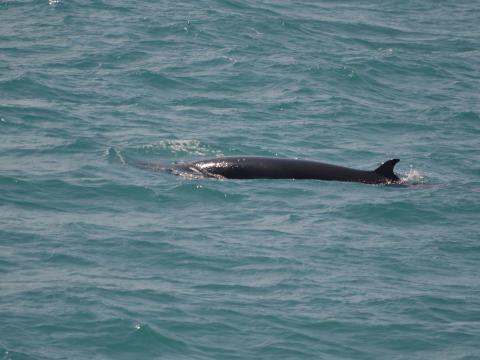 Report from Hafsúlan: On this a bit windy morning we left the harbour in search of cetaceans. After a short trip traveling west we found ourselves surrounded by minke whales. Which started out with one single individual turned into at least 5 animals in an one kilometer radius. We had so many minke whales coming up all around, it was hard to decide where to look. After a while watching these incredible creatures we decided to move on to look for different species. Just as we decided to turn the boat around to head back home we spotted a small pod of two white-beaked dolphins. Even though these animals seemed a little bit shy, we enjoyed seeing them at least a few times. Estimating 6-8 minke whales.