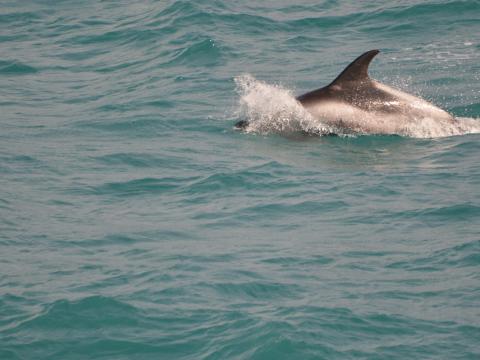 Report from Hafsúlan: With the wind in our hair we sailed forth on to Faxaflói bay in search of cetaceans. Spotting was hampered by the amount of whitecaps but we persevered and not long in to our journey we were richly rewarded. One of our eagle eyed passengers spotted some splashing in the distance which on close inspection turned out to be large pod of breaching and leaping white beaked dolphins. There were about 15 individuals and most of them performed awesome leaps and twists in the air. We stayed close to this dolphins until soon we had a mother and calf swim alongside us for about 20mins. The calf seemed very curious and kept leaping in front of us. We eventually had to tear ourselves from the dolphins in search of some larger animals. Although we had some great bird sightings we were unlucky in that we didn´t spot any larger cetaceans. Still a great trip for dolphins.