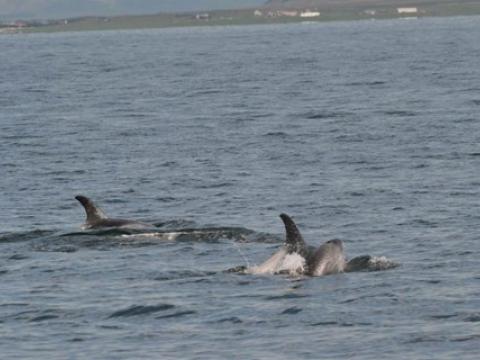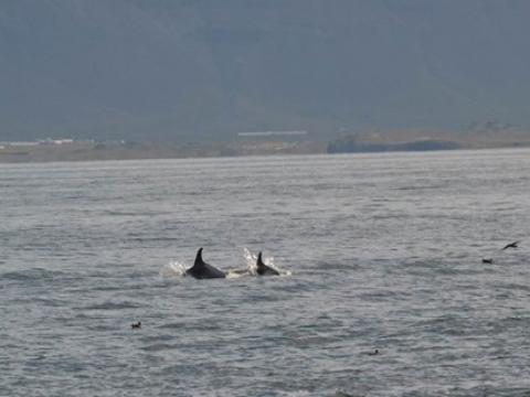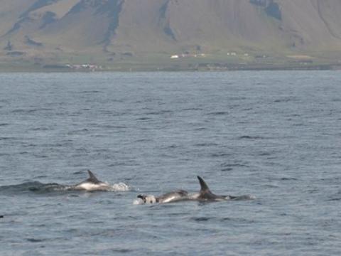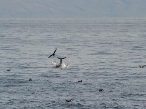 Report from Elding: The weather was the best it could be today, no wind, blue skies, warm sun on our face (don't forget the sun screen) and wildlife was not to bad either. Minke whales are still proving to be quite difficult and even though we knew there were whales in the area, told to us by the other whale watching vessels, we unfortunately didn't see one on this tour. However, we did see 4 different pods of white-beaked dolphins and these definitely made up for the lack of whales. The first pod we saw, pod of 7-9 individuals and the others where maybe 3-5 in each, were challenging to begin with but suddenly their behaviour changed, they started to play under and around the boat, mothers and calves surfacing together. Behaviours such as, leaping, head slapping, sharking were seen linked to them feeding. Birds got involved too including; fulmars, seagulls and manx shearwaters. On our search for the whales we spotted 2 pods of harbour porpoises which, were shy so we didn't spend long with these. A big bonus for the tour was a harbour seal that graced us with his presence. In the end, no whales but lots of other wonderful wildlife and perfect weather.
