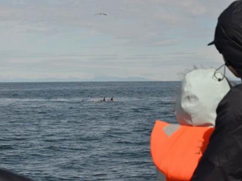 Report from Hafsúlan: The northerly winds had picked up as we sailed out of the harbour this afternoon. After around 45 minutes into the tour, a big splash was seen in front of the boat. It must have been from a minke whale or a humpback whale but we did not get to see it again. So we headed further out and looked for a long time without finding anything of interest. All of a sudden, a passenger jumped up claiming to have seen something and lo and behold, there was a minke whale there. It surfaced three times quite close to us but unfortunately not often enough so that we could really get a satisfying look at it. On the way back, nothing but a single potential blow was spotted in the distance so in the end, we decided to give out complimentary tickets. Better luck next time!