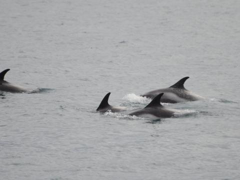 Report from Hafsúlan: After a very busy morning tour, we were full of hopes to also have a great afternoon tour. As we sailed out in to Faxaflói, the sea conditions and the weather were still amazing, so we very soon found another pod of 11-13 white-beaked dolphins again, sticking closely together and obviously resting. They seemed very calm and and didn't move a lot, so it was easy for all our passengers to take nice pictures. We spent some time with these dolphins, before we started to move on towards a different area. But it didn't take long, until we found a minke whale and soon noticed that there were 3-4 minke whales around us again. One of these minke whales was Tap again, a minke seen regularly since 2007. And again, Tap was the minke coming closest to us and staying around us for some time. Since we do not want to disturb the animals for too long, we decided to leave these friendly minke whales and look for something else. And soon, we found another pod of 15-20 white-beaked dolphins that seemed to be traveling towards a different area. They were racing through and leaping out of water and were amazing to watch as we were traveling next them. A great ending to this tour full of dolphins and minkes!