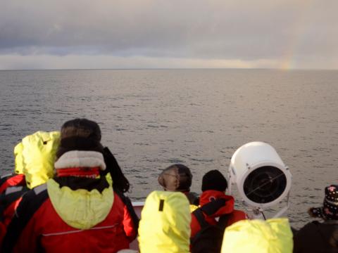 Report from Eldey: The snow fall fell on an off throughout the day but when it fell, it fell alot hindering our visibility. It only lasted a short while however and once we were out into the bay the snow stopped falling and the heavens opened to a colourful sky, clouds of different grays and even a rainbow. You could see the snow falling in the distance though so we prepared ourselves with warm clothing and a positive attitute. We were lucky on the way out we found a small pod of white-beaked dolphins, maybe just 3 or 4. They were not in a whale watching mood and they tried their best to head away from the boats. We got the hint and left them in peace. They were unfortunately the only cetaceans to be seen on the tour so we offered our passengers complimentary tickets to come again for free in the next two years.